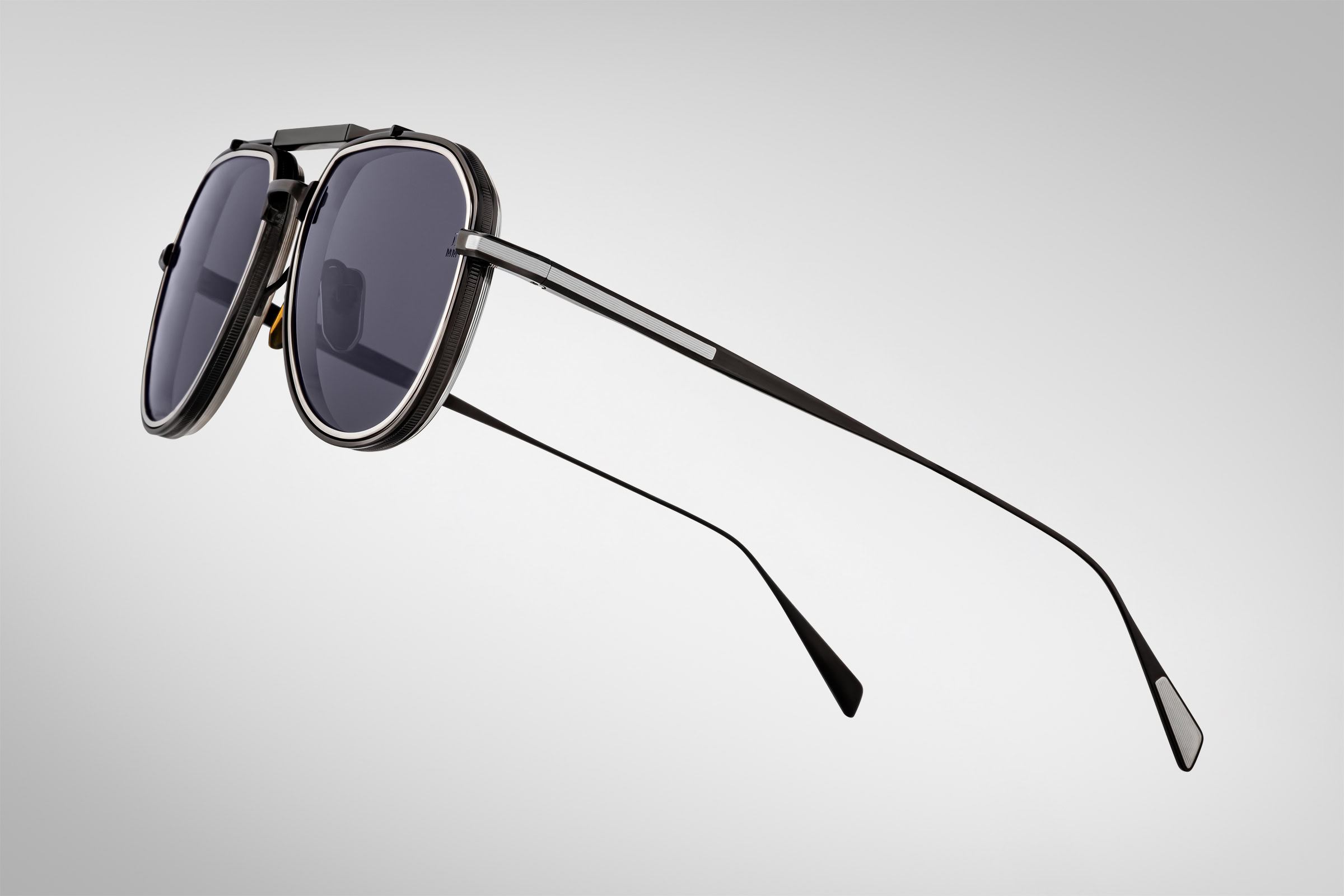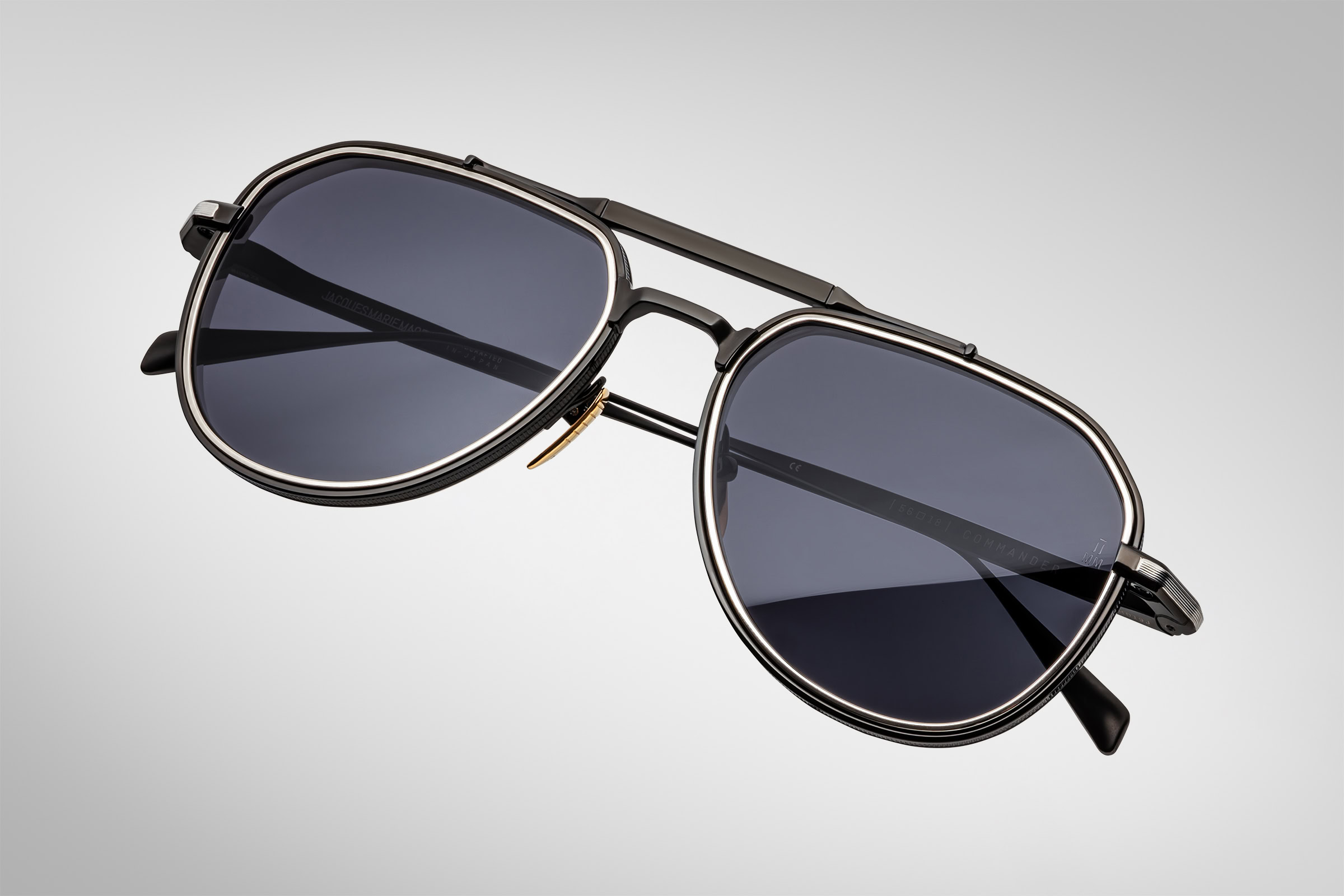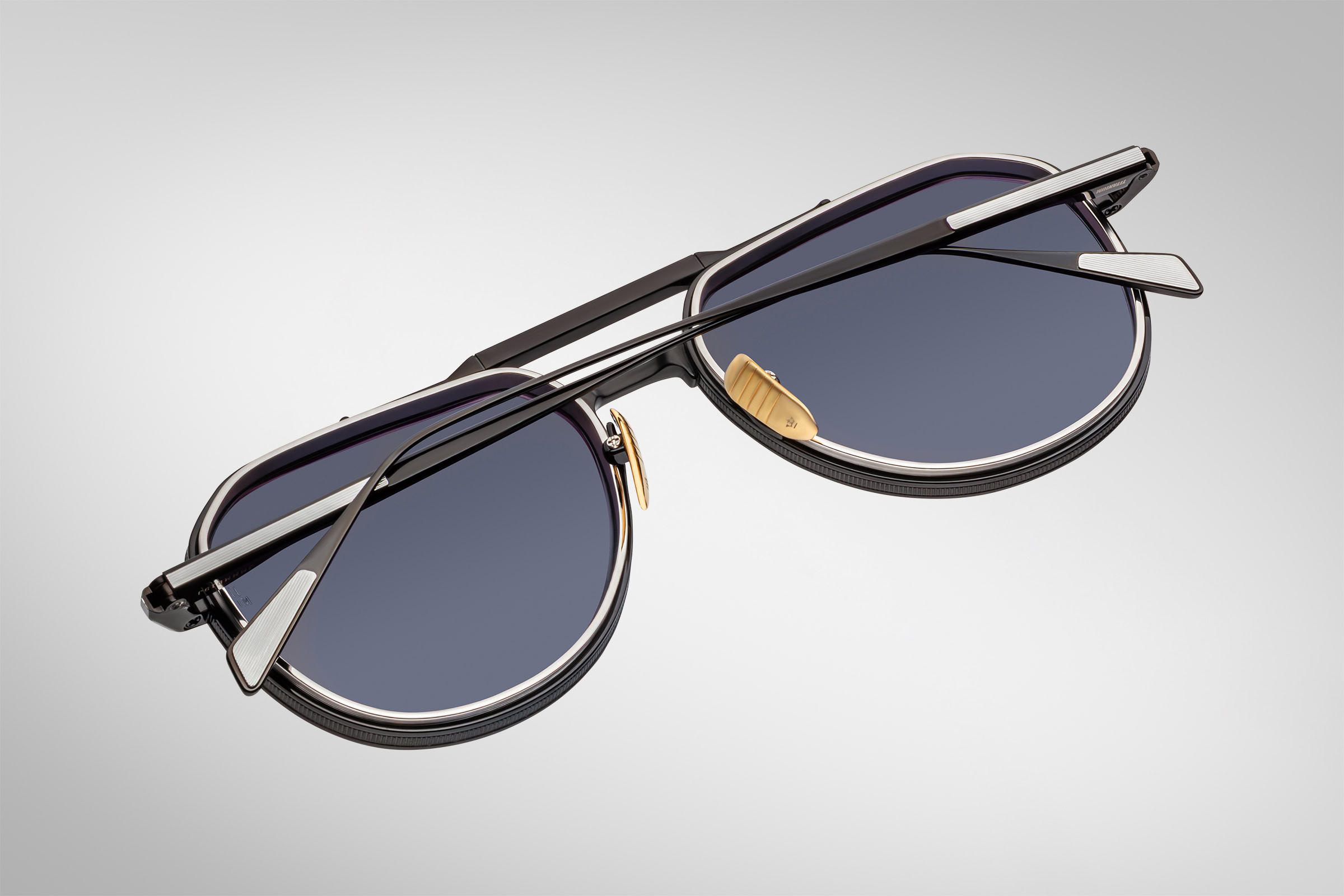 Prestigious, seventies-inspired pilots with unique 6mm titanium lens-rim inserts and dual-tone bridge and temple details with our signature hairline embellishments.